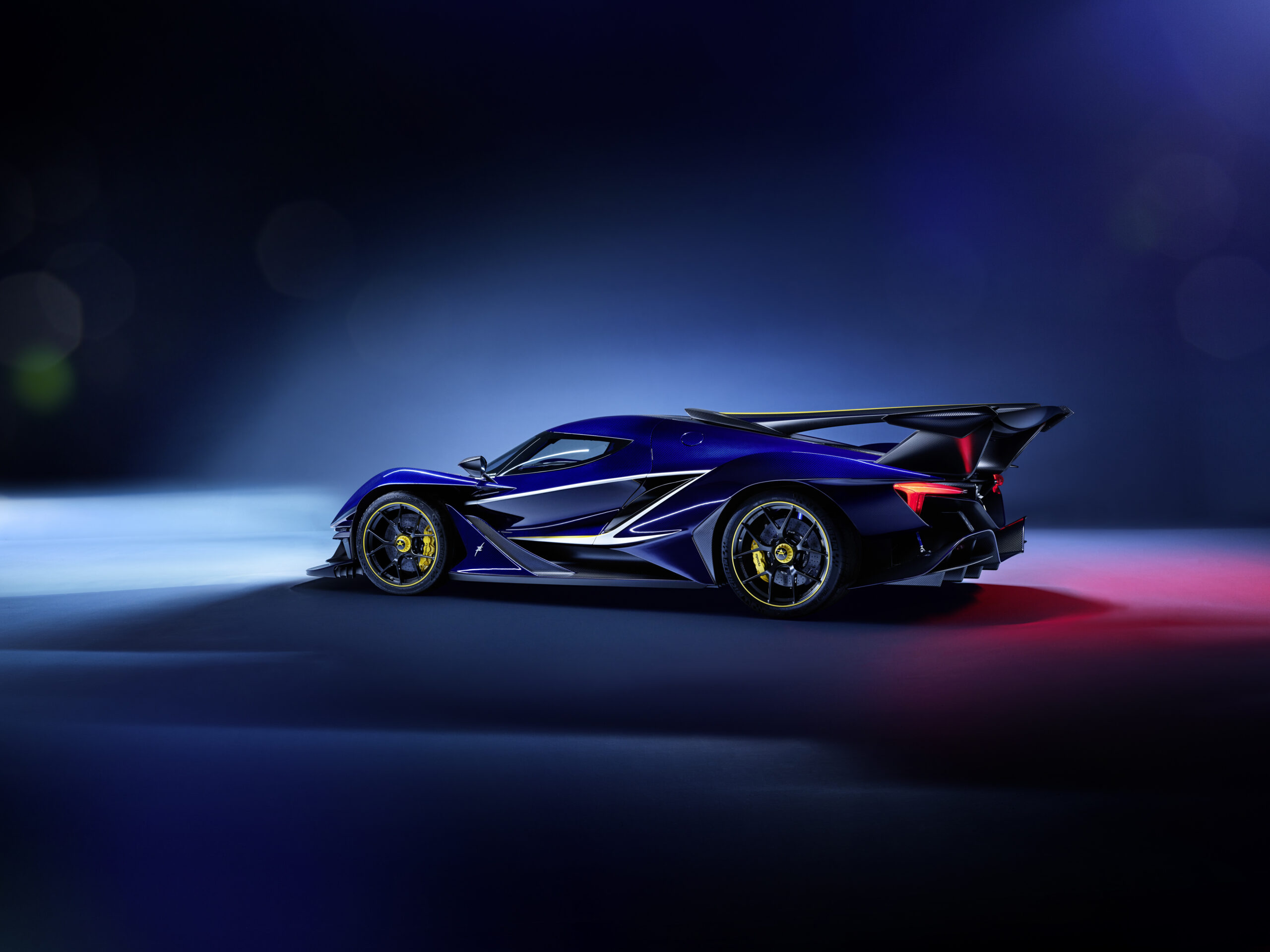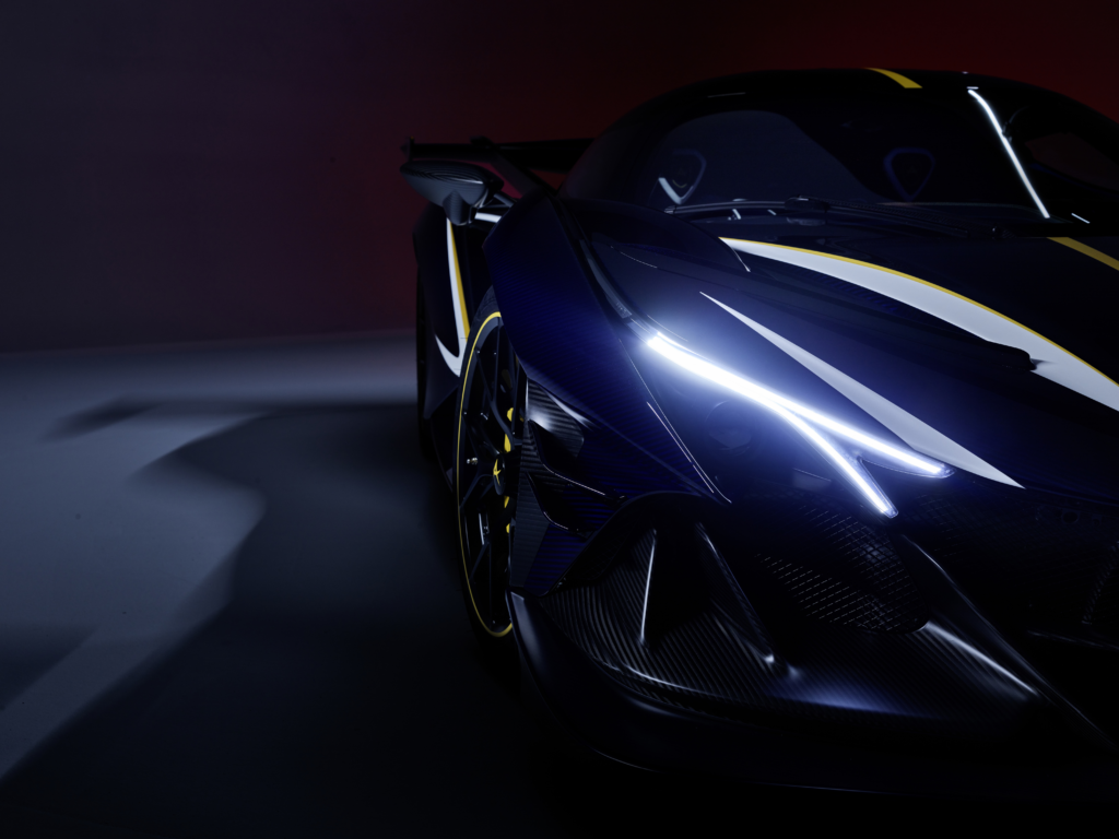 Trata-se de um supercarro totalmente construído em carbono, de tração traseira, com um motor de combustão
